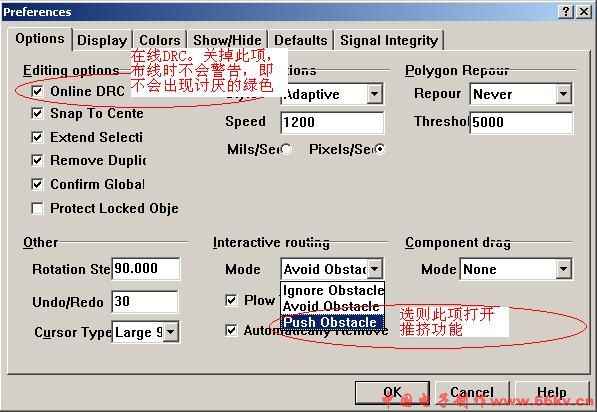 打開這個(gè)功能,就可以不拆除原有布線而直接走線,有時(shí)是很方便的。點(diǎn)擊菜單tools,選擇preferences,如下圖所示: