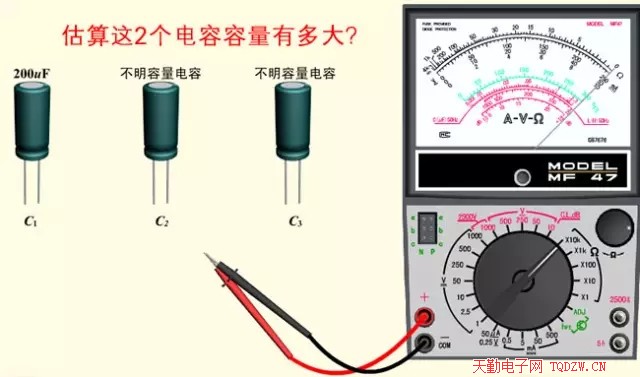 1、估測微法級電容容量的大小:可憑經(jīng)驗或參照相同容量的標準電容,根據(jù)指針擺動的最大幅度來判定。所參照的電容耐壓值可以不同,只要容量相同即可,例如估測一個100μF/250V的電容可用一個100μF/25V的電容來參照,只要它們指針擺動最大幅度一樣,即可斷定容量一樣。