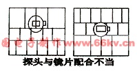 探頭與鏡片配合不符合要求,上圖左中鏡片上下放反,上圖右中探頭設置在鏡片中間,均無遠距離感應效果,下盲區加大,出現不感應現象。